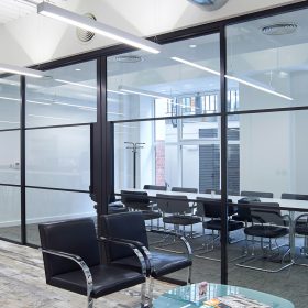 Revolution 54 single glazing – Shoreditch Edition is a distinctive glazed partition system which is an enhancement of our standard Revolution 54 system.