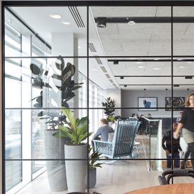 Optima 117 Plus Shoreditch Edition features a slimline aluminium framework. It can achieve up to Rw40dB. This is bonded to the glass, thereby retaining both the structural stability and acoustic performance of the glass partition, whilst at the same time giving the appearance of cutting through the glass with dramatic effect.